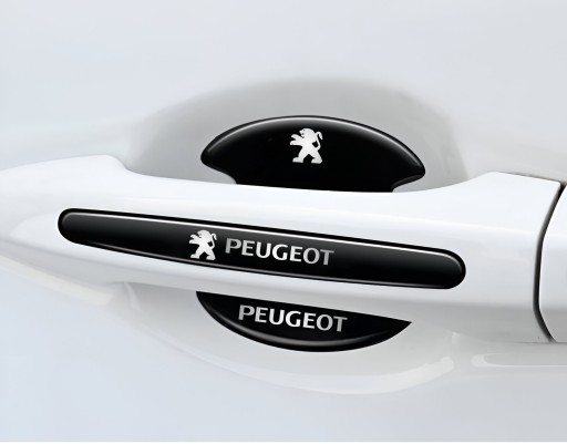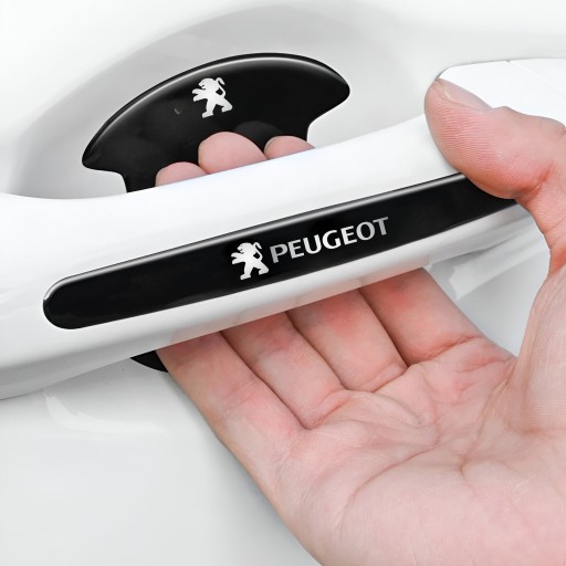 Zestaw MOCNYCH, grubych ochronnych naklejek pod klamki i na drzwi lub lusterka z logo PEUGEOT.
