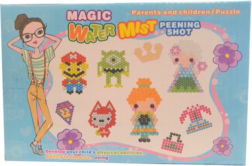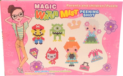Zestaw zawiera gotowe, wzory a więc będzie łatwiej zacząć zabawę. Ułożone na gotowym wzorze koraliki należy spryskać woda i stworzyć breloczek lub figurkę 3D.