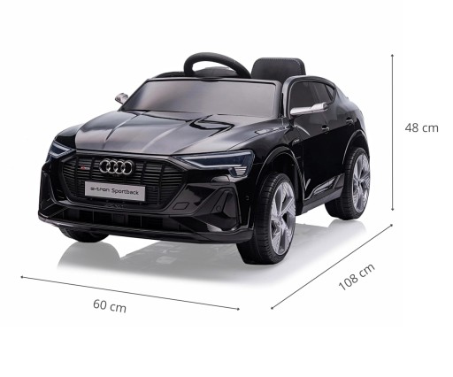 Autko na akumulator tak samo jak i jego pierwowzór, to połączenie sportowego designu i klasycznego charakteru. Pojazd wykonany został z dbałością o najmniejsze detale z najwyższej jakości materiałów które charakteryzują się wysoką wytrzymałością oraz bezpieczeństwem. Steruj elegancką kierownicą pojazdu Audi E-Tron Sportback poczuj się jak rasowy kierowca sportowego autka. Zarówno w oryginale samochodu Audi E-Tron Sportback jak i w naszym pojeździe na akumulator, gdyż napędzają je dwa 25W silniki elektryczne zapewniając imponującą moc, a 3 różne poziomy prędkości dają możliwość dostosowania prędkości do umiejętności dziecka. Wzbudza podziw swoją elegancką sylwetką. Wygodne duże wyprofilowane siedzisko z pasem bezpieczeństwa to zaleta i komfort dla dziecka. Sterowanie z pilota, który posiada funkcję blokady prędkości- P, oznaczenie jednej z 3 poziomów prędkości – S, funkcje skręcania i jazdy do przodu i do tyłu.