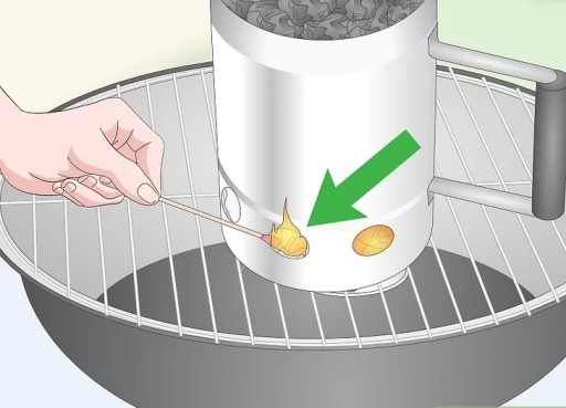 W celu użycia: komin od góry wypełnij brykietem. W dolnej części umieść papier bądź rozpałkę, podpal je i odczekaj do rozżarzenia węgli, a następnie wysyp je na palenisko grilla/wędzarni. Konstrukcję należy umieścić na niepalnym, stabilnym, płaskim podłożu na świeżym powietrzu (np. na ruszcie od grilla).