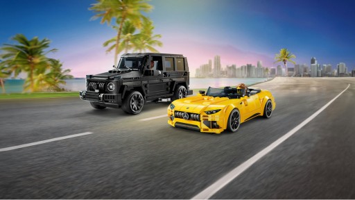 Modele czarnego SUV-a Mercedes AMG G 63 i żółtego kabrioletu AMG SL 63 zawierają autentyczne detale nawiązujące do pierwowzorów, w tym przednie grille, maski, elementy wnętrza i rozpoznawalną kolorystykę Mercedesa. Do każdej zabawki dołączona jest także minifigurka kierowcy, którą dzieci mogą umieścić za kierownicą i bawić się w wyścigi.