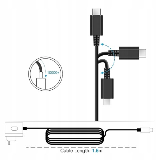 Elastyczny, niełamliwy kabel ładujący wysokiej jakości (1,5 m). Do wszystkich urządzeń ze złączem ładowania typu C.