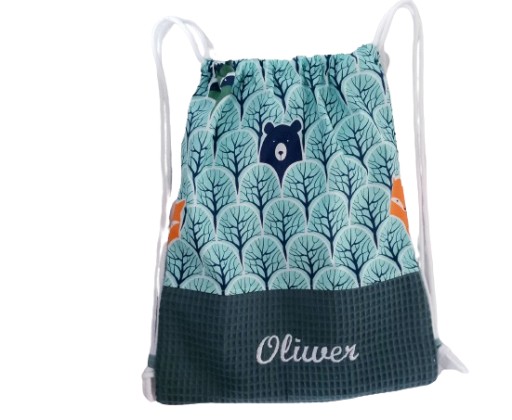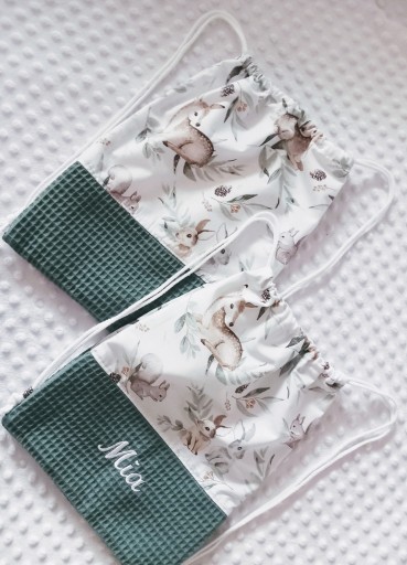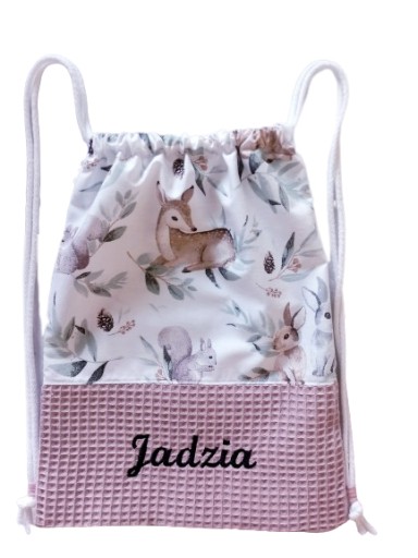 Worek z wyhaftowanym imieniem dziecka w rozmiarze wys.35cm x szer.30cm (+/-2cm)