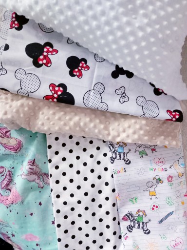 Wykonany z łączonych tkanin, z bawełny oraz wafelka, na którym wykonany jest haft!
