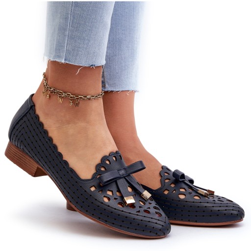 BALERINY DAMSKIE AŻUROWE Z KOKARDKĄ KOMFORTOWE NA PŁASKIM OBCASIE