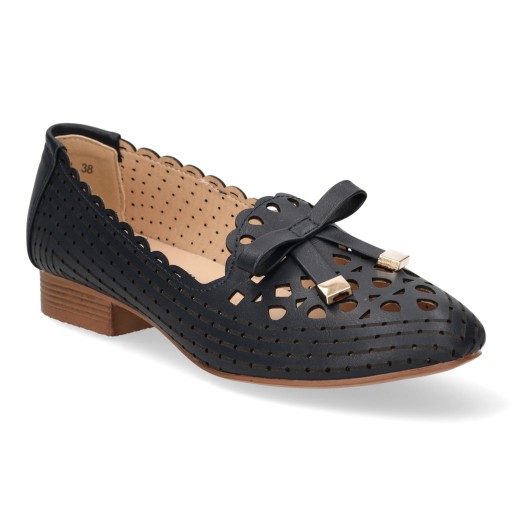 BALERINY DAMSKIE AŻUROWE Z KOKARDKĄ KOMFORTOWE NA PŁASKIM OBCASIE R.41