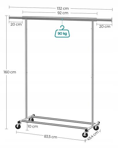 Możliwość wysunięcia drążka o 20 cm z każdej strony daje nam dodatkową powierzchnie na wieszane ubrania.