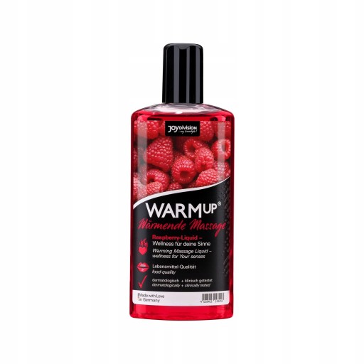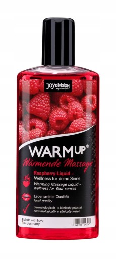 JoyDivision WARMup Raspberry to nietłusty olejek do masażu opracowany w celu zapewnienia niesamowitych wrażeń o zapachu słodkiej maliny z magicznym efektem rozgrzewającym, który aktywowany jest podczas sesji masażu i zapewnia wszystkie rozkosze duchowej intymności podczas gry wstępnej.