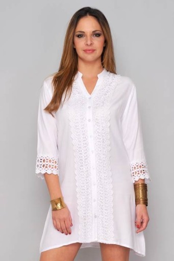 ПЛЯЖНАЯ ТУНИКА - S/M - ПЛОТНОЕ КРУЖЕВО С ВЫШИВКОЙ