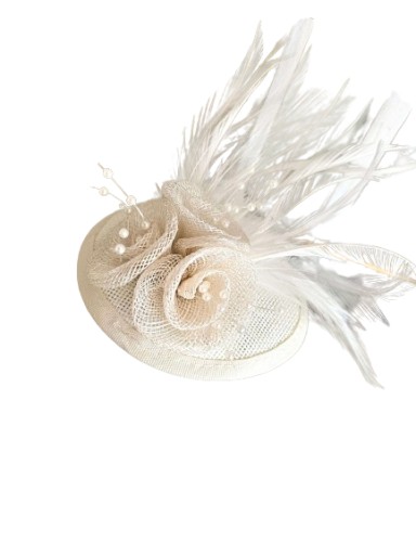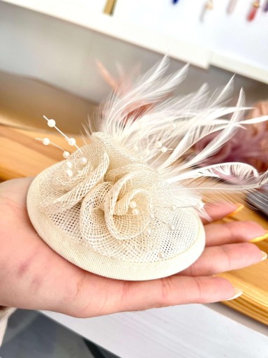 Fascynator ecru toczek do włosów mały