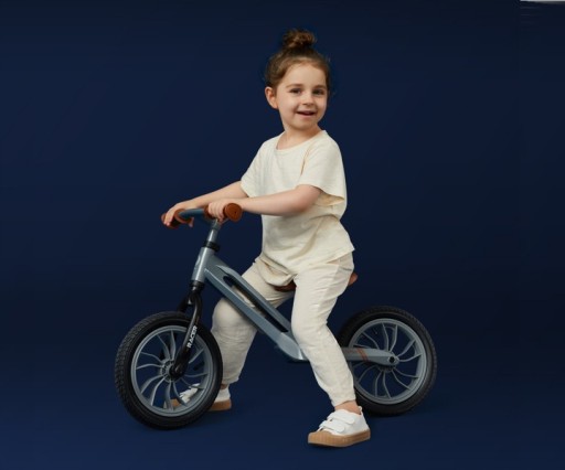 Rowerek biegowy RACER to designerski i solidny produkt, zaprojektowany i wykonany w najnowszej technologii. Stop magnezu wykorzystany w ramie powoduje, że jest ona lekka, ma wysoką wytrzymałość i duży moduł sprężystości. Użyte w rowerku 12” pompowane opony z bieżnikowaniem zapewnią stabilność i bezpieczeństwo na wszystkich nawierzchniach drogowych.