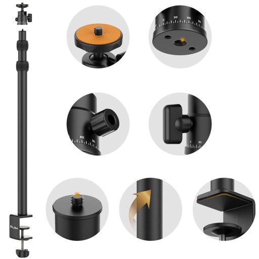 VIJIM LS03 to bardzo wysoko wysuwany statyw z zaciskiem stołowym, który jest idealnym rozwiązaniem dla osób potrzebujących stabilnego podparcia dla swojego aparatu, uchwytu na telefon, lampy pierścieniowej lub innych akcesoriów z przyłączem śrubowym 1/4". Ten statyw oferuje wiele funkcjonalności i cech, które sprawiają, że jest niezwykle praktyczny i wszechstronny.