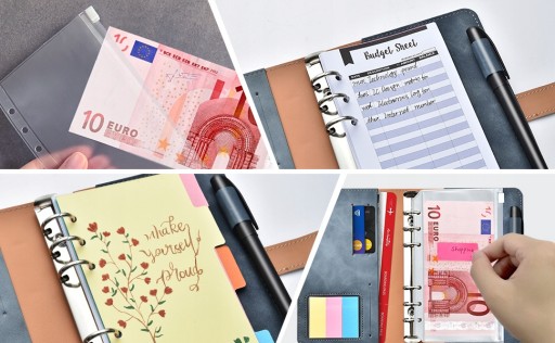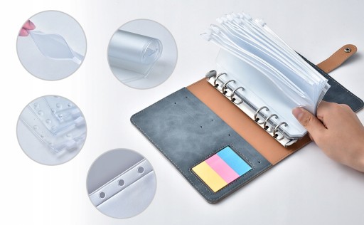 Praktyczny i przenośny: Przenośny i lekki rozmiar okładki budżetowej A6 (190 x 128 mm) oraz przezroczysty zamek błyskawiczny (180 mm x 95 mm) zapewniają wygodę użytkowania. Z 6 wstępnie wyciętymi otworami, można łatwo umieścić w bindatorze A6. Kieszeń na karty wewnątrz pozwala na przechowywanie różnych dokumentów i kart bankowych, idealna do noszenia w torebce, plecaku lub walizce.