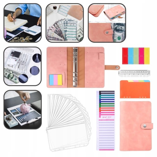 Koperta budżetowa A6, moinkerin segregator budżetowy, z przezroczystymi plastikowymi okładkami, arkuszami budżetu, etykietami samoprzylepnymi, miękka