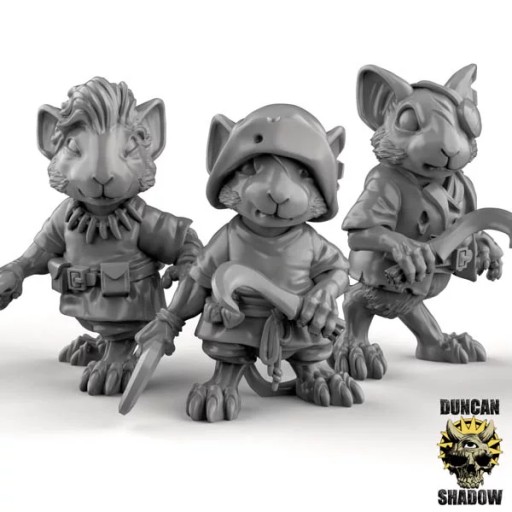 Oferujemy zestaw dziesięciu figurek Mousle with Hand Weapons autorstwa Duncan Shadow, wydrukowany na drukarce żywicznej.