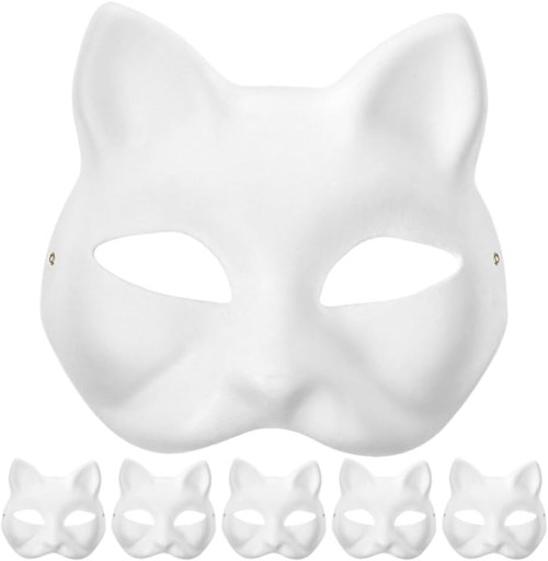 6 × Терианская маска для лица кошки на Хэллоуин, поддающаяся покраске маска кошки своими руками