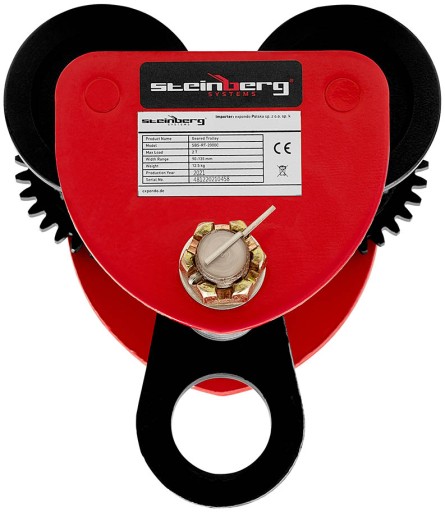 Wózek suwnicowy marki Steinberg Systems pozwala na łatwe przenoszenie ładunków z punktu A do punktu B. Sprawdzi się do profesjonalnego użytku w fabrykach, przemyśle, stoczniach i wszędzie tam, gdzie trzeba przenosić ciężkie przedmioty. Współczynnik bezpieczeństwa wynosi 1,25x (w oparciu o maksymalną ładowność). Cztery żeliwne kółka zapewniają płynną i bezawaryjną pracę. System podwójnych rolek zaprojektowany został w taki sposób, że działa zarówno na belkach prostych, stożkowych oraz na zakrzywionych szynach. Regulacja w zakresie 60-110 mm pozwala zamontować wózek na różnych belkach o odpowiedniej szerokości. Urządzenie jest łatwe w instalacji. Przemieszczanie ładunków przebiega sprawnie i wygodnie.