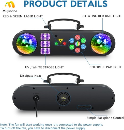 Efekt obracającej się kuli i wzór światła - Kule dyskotekowe w kształcie kopuły mają obrotowy efekt świetlny, który emituje szeroką gamę jedno- lub wielokolorowych wiązek, emitując krzyżującą się piękną wiązkę od podłogi do sufitu i od ściany do ściany. Czerwone i zielone światło parttern może wytwarzać dziesiątki wzorów na raz, wystarczająco dużo pokrywając przestronny salon. Dodaj trochę dymu, aby zobaczyć dynamiczne promienie, ciesz się cudowniejszymi efektami świetlnymi!