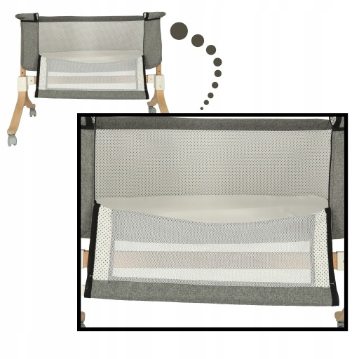 CECHY PRODUKTU Łóżeczko dostawka dla niemowląt dzieci drewniana na kółkach kojec szary