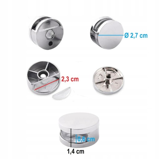 Materia?: wykonany ze stopu cynku, polerowany i chromowany, mo?e stabilnie przymocowa? lustro do ?ciany. Odporne na korozj?, nierdzewne i trwa?e.