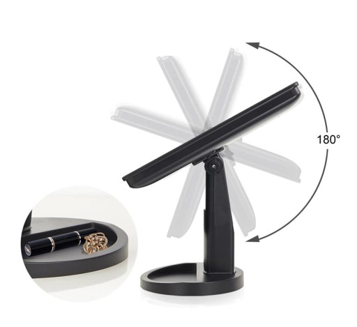 Dzięki możliwości regulacji nachylenia lusterka w zakresie aż 180° w prosty sposób można dostosować jego ułożenie do własnych, aktualnych potrzeb oraz preferencji. Nie musisz podnosić lusterka i przestawiać go na wyższe i niższe półki, by wykonać perfekcyjny makijaż – wystarczy regulacja kąta nachylenia i doskonale doświetlisz każde miejsce twarzy.