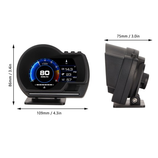 3. Wiele wyświetlaczy: Płaskie tryby OBD2 i GPS mogą być wyświetlane na tym samym interfejsie. Wyświetlacz trybu OBD: prędkość, temperatura wody/temperatura oleju; zużycie paliwa na napięcie; prędkość; przebieg; Czas podróży; numer satelity; Wysokość; ciśnienie turbiny; test przyspieszenia; test hamulca; dane itp.