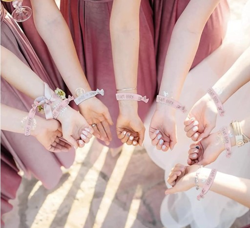 Zestaw składa się z 10 szt. różowych opasek z napisem Team Bride oraz 1 szt .białej opaski z napisem Bride. Doskonały dodatek dla każdej Panny Młodej i jej Teamu. Drużyna Panny Młodej jest wyjątkowa i jedyna w swoim rodzaju, dlatego wyróżnij ją specjalnymi opaskami na nadgarstki. Gadżet stanowi świetną pamiątkę z wieczoru oraz nadaje się na wspólną sesję zdjęciową.