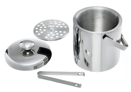 Termoizolacyjny pojemnik na lód z podwójną ścianką, wykonany został ze stali nierdzewnej. Dzięki swoim właściwościom termoizolacyjnym, zapobiega szybkiemu topieniu się lodu. Posiada pokrywkę oraz rączkę do przenoszenia. Wyposażony został w sitko do odcedzania oraz szczypce, które można wsunąć w pokrywę, dzięki czemu całość zajmuje niewiele miejsca. Niezastąpiony, gdy chcemy zaserwować lód do napojów, koktajlów i drinków.