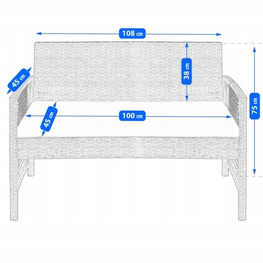Zestaw MEBLI OGRODOWYCH sofa + 2 fotele + stolik