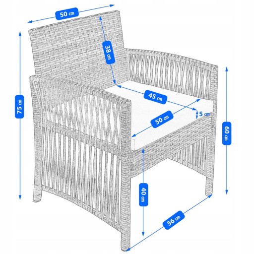 ✅ Zestaw mebli ogrodowych, który zapewnia wakacyjny nastrój na zewnątrz np. balkonie, tarasie lub w ogrodzie.