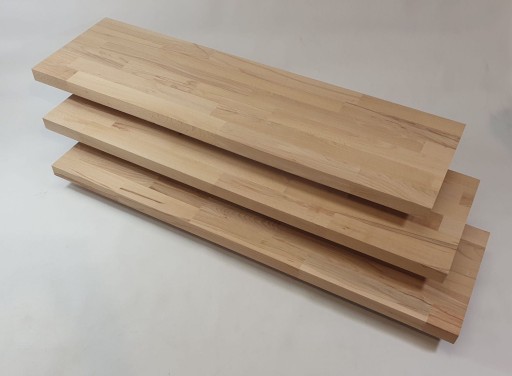 Stopień z drewna bukowego wykonany w jakości NATUR. Wyprodukowany z lameli łączonych na mikrowczep.