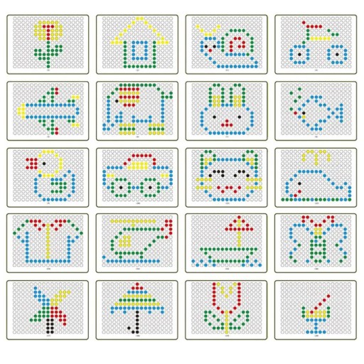 W zestawie znajduje się10 kart z 20 różnymi wzorami, które można włożyć do tablicy kreślarskiej, aby dzieci mogły kopiować i ćwiczyć swoją małą motorykę. Można także bawić się kreatywnie i wymyślać własne wzory :)