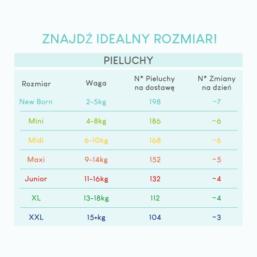 - GWARANCJA PILLO: Jakość pieluszek Pillo towarzyszy twojemu maleństwu od narodzin do końca pierwszego dzieciństwa dzięki szerokiej gamie rozmiarów od 1 do 7 oraz pieluszek treningowych, które pomagają w nauce korzystania z nocnika i są dostępne w rozmiarach od 4 do 7.