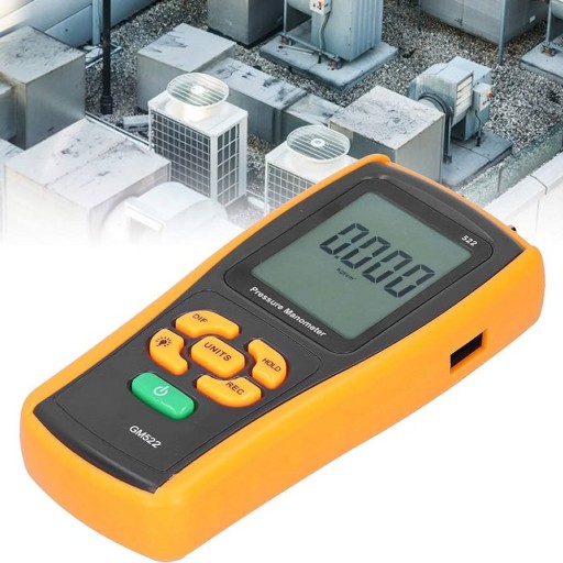 Cyfrowy manometr różnicowy - miernik ciśnienia oraz podciśnienia.