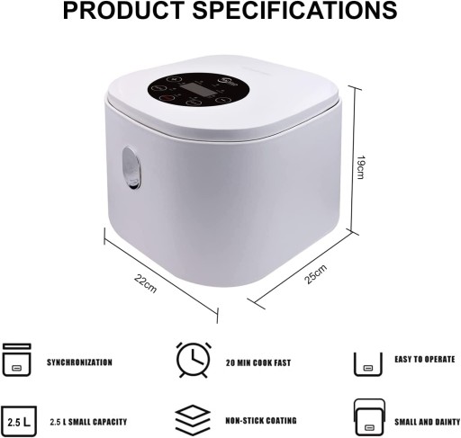 - Nasze małe urządzenie do gotowania ryżu ma 6 funkcji multicookera. Wystarczy dotknąć przycisku menu, a urządzenie do gotowania ryżu natychmiast zacznie działać, utrzymując idealną temperaturę. Można nawet umówić się na przygotowanie posiłku. Po przygotowaniu jedzenie może pozostać ciepłe aż do Twojego przybycia.