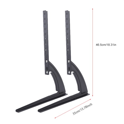 Opis: Ten stołowy wspornik telewizora wykonany jest z pogrubionej płyty stalowej, o mocnej konstrukcji i dużej nośności. Może trwale zamocować płaski ekran telewizora LED/LCD lub monitor. W zestawie niezbędne elementy montażowe, łatwe do samodzielnego montażu. Cechy: Ten uchwyt do telewizora jest montowany na blacie, system dwóch nóg zapewnia optymalną równowagę, równomiernie rozkładając ciężar telewizora. Wykonany z wysokiej jakości stali wspornik ten jest trwały, wytrzymały i ma dużą nośność. Wspornik do telewizora o przekątnej 32–70 cali umożliwia regulację wysokości montażu telewizora w 3 poziomach, dzięki czemu można znaleźć optymalną wysokość oglądania. (14~42 cale bez tej funkcji) Wewnętrzna trójkątna podstawa jest znacznie stabilniejsza i zapewnia lepsze wsparcie dla telewizora. Łatwy w instalacji, ustaw telewizor i umieść go na górze szafki TV, aby zapewnić lepsze wrażenia wizualne. Specyfikacje: Stan: 100% nowy Materiał: Płyta stalowa Kolor: Czarny Rozmiar: