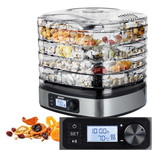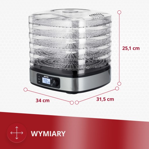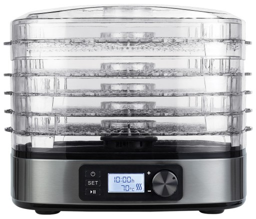 Z ➡️5 przeźroczystymi sitami o wymiarach 31,5 x 29,5 cm oraz elektronicznym wyświetlaczem, masz pełną kontrolę nad procesem suszenia.
