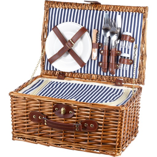 Koszyk piknikowy to idealne rozwiązanie dla romantycznych chwil na łonie natury. Wyposażony w wygodną rączkę, zapewnia łatwy transport nawet w trudnym terenie. W zestawie znajduje się kompletny zestaw talerzy i sztućców dla dwóch osób, co sprawia, że piknik staje się jeszcze bardziej wygodny i przyjemny. Dodatkowo, koszyk został wyłożony tkaniną termoizolacyjną, która utrzymuje odpowiednią temperaturę potraw przez dłuższy czas, a także zamykany na solidny zamek, zapewniający bezpieczeństwo i stabilność podczas transportu.