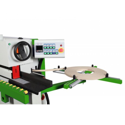 Okleina może być w zwojach o grubości do 3 mm i w paskach o grubości do 4 mm. Maszyna posiada także zbiornik na klej o pojemności 1,2 kg, ponadto wstępne frezowanie, automatyczne klejenie, przycinanie krawędzi, frezowanie góra-dół, cyklinę promieniową.