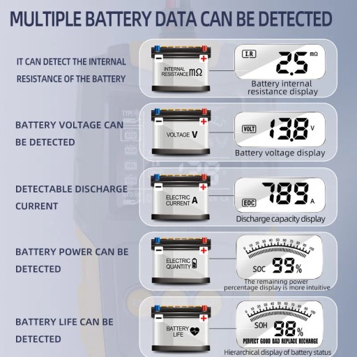 (4) Może wykrywać i wyświetlać pojemność baterii SOC i stan zdrowia SOH, które są wyświetlane w procentach.