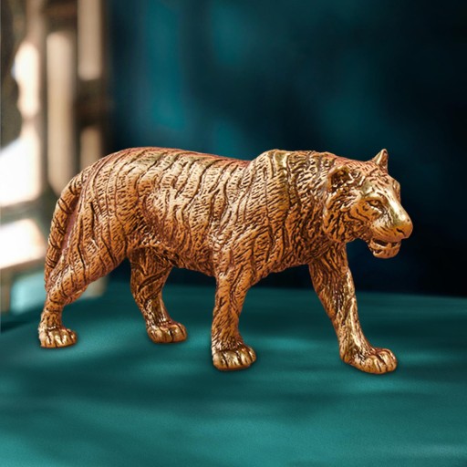 [Dekoracyjna statua kolekcjonerska] Miedziana mini figurka tygrysa, metalowa statua doskonale nadaje się do salonu, sypialni, gabinetu, biura, biurka, stołu, szafki, półki na książki. Idealny również do kawiarni, restauracji, wystawy, sklepu.