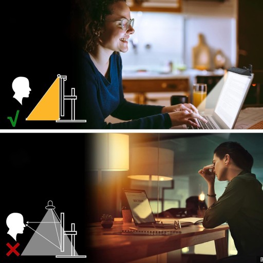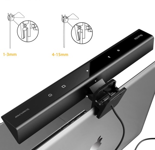 Oświetlenie monitora znajduje się nad ekranem laptopa i emituje światło tylko w dół i do przodu. Doskonale i równomiernie oświetla obszar przed ekranem, tj. klawiaturę itp. Brak irytujących odbić na ekranie i brak ryzyka tworzenia cieni na dłoniach lub biurku. Pracuj / ucz się / graj na laptopie w nocy bez migotania! Przyniesie to radość i zapobiegnie zmęczeniu oczu.