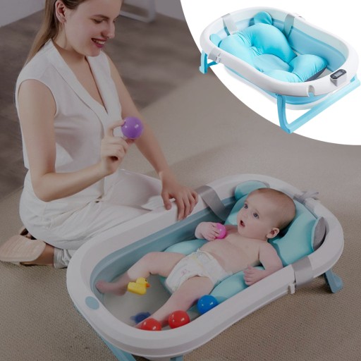 SKŁADANA DUŻA WANIENKA DLA DZIECI TERMOMETR FOTELIK PODUSZKA DO KĄPIELI