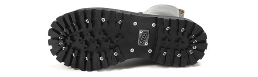 -zastosowane w tych glanach wykonane są z odpornych na ścieranie mieszanek gumowych i termokauczukowych, co w połączeniu ze specjalnie zaprojektowanym wzorem bieżnika, pozwala połączyć w tych butach wytrzymałość, trwałość, elastyczność, wygodę oraz dobrą przyczepność do podłoża. Dwuwarstwowa podeszwa jest klejona, a następnie przeszywana, aby zapewnić maksymalną trwałość użytkową, oraz dodatkowo wzmocniona jest wkrętami. Użyte technologie absorbują i amortyzują wszelkie nierówności drogi, które każdego dnia pokonujesz.