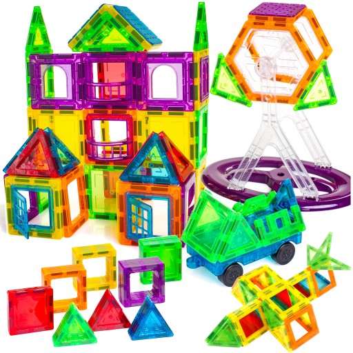 Klocki magnetyczne uczą najmłodszych twórczego myślenia. Dzięki silnym magnetycznym złączom posiadają dowolną możliwość tworzenia.