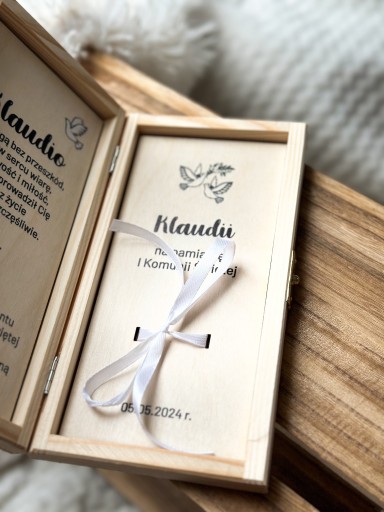 Przepiękna i długotrwała pamiątka Pierwszej Komunii Świętej. Dzięki dedykacji i personalizacji pudełko to wyjątkowy prezent na Pierwszą Komunię Świętą dziecka.