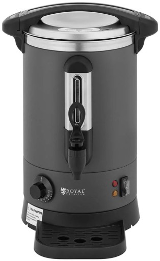 Warnik marki Royal Catering pozwala podgrzewać oraz utrzymywać w cieple napoje. Duża pojemność 6,1 l nadaje się do obsługi wielu osób w hotelach, stołówkach, na targach, festiwalach czy jarmarkach. Warnik wykonany został z wytrzymałej stali nierdzewnej, łatwej w pielęgnacji i nie wchodzącej w reakcje z żywnością. Duża moc 1500 W pozwala szybko podgrzać napoje do temperatury 30-110°C. Dzięki funkcji utrzymywania ciepła zawartość warnika jest zawsze gotowa do spożycia. Dwie lampki kontrolne pokazują stan funkcji ogrzewania lub utrzymywania ciepła. Wskaźnik poziomu płynu pozwala kontrolować jego uzupełnianie. Dwuścienna konstrukcja za sprawą izolacji jest szczególnie energooszczędna. Kranik pozwala dokładnie odmierzać porcje napoju a tacka ociekowa chroni przed rozlaniem.