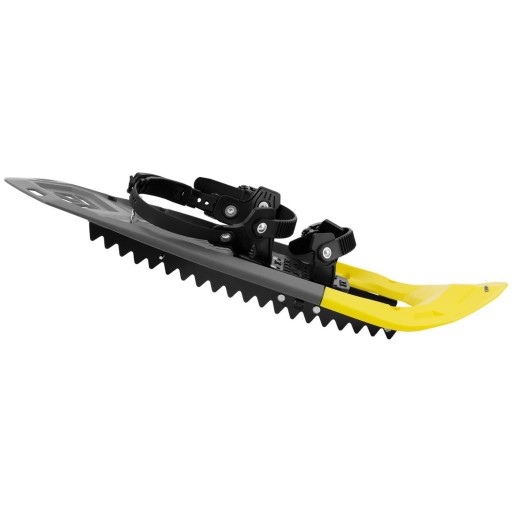 Rakiety śnieżne marki Gymrex pozwalają na bezpieczne i wygodne chodzenie po głębokim śniegu. Regulacja pozwala dopasować je do butów o różnych rozmiarach. Ramę przedmiotu wykonano ze stali nierdzewnej i polipropylenu, jest wytrzymała i zarazem lekka co pozwala bez wysiłku unieść stopy. System mocowania umożliwia podnoszenie pięt. Szybkie i łatwe wiązania pozwalają założyć rakiety śniegowe w kilka chwil. Giętka konstrukcja zapobiega powstawaniu punktów nacisku, nawet podczas całodniowych wycieczek. Przednie i boczne raki zapewniają dodatkową przyczepność na płatach śnieżnych i oblodzonych powierzchniach. Wykorzystane materiały są mrozoodporne i odporne na trudne warunki atmosferyczne.