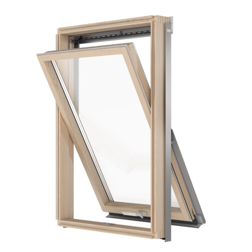 TRIO PINE posiada centralną oś obrotu (zawiasy montowane w połowie wysokości okna), oraz klamkę na dole ramy, dzięki czemu jest łatwe i wygodne w obsłudze niezależnie od wysokości instalacji. Taka konstrukcja zapewnia większą powierzchnię przeszklenia niż niektóre produkty konkurencji.