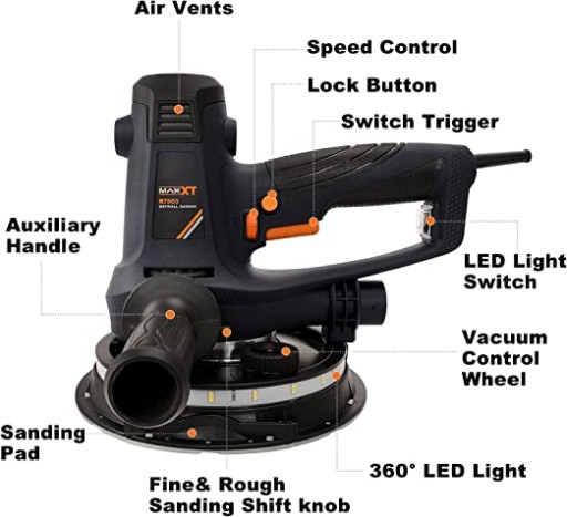 MAXXT Szlifierka ręczna 810 W do suchej zabudowy, elektryczna szlifierka do ścian, 1500 – 2800 obr./min, zmienna prędkość, regulowane odsysanie, szlifowanie, samozasysanie